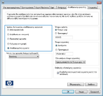 αποθήκευσης εργασιών, μπορείτε να ορίσετε