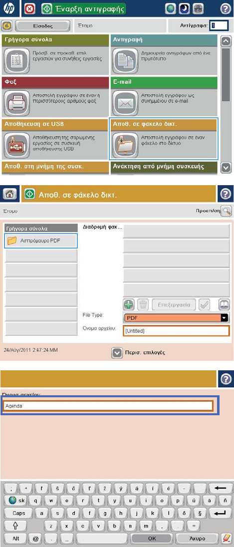 - Αποστολή σαρωμένου εγγράφου σε φάκελο δικτύου