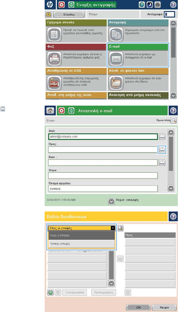 - Χρήση του βιβλίου διευθύνσεων για την αποστολή email