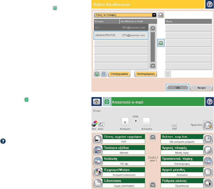 - Χρήση του βιβλίου διευθύνσεων για την αποστολή email