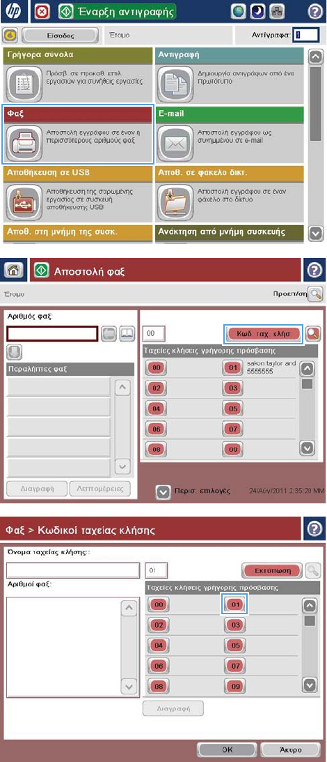 - Αποστολή ενός φαξ με χρήση μιας ταχείας κλήσης