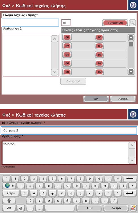 4. Πατήστε το πεδίο Όνομα ταχείας κλήσης, για να