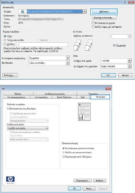 στο κουμπί Ιδιότητες ή Προτιμήσεις.