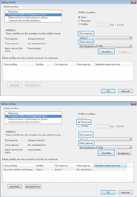 - Εκτύπωση της πρώτης ή της τελευταίας σελίδας σε διαφορετικό χαρτί (Windows)