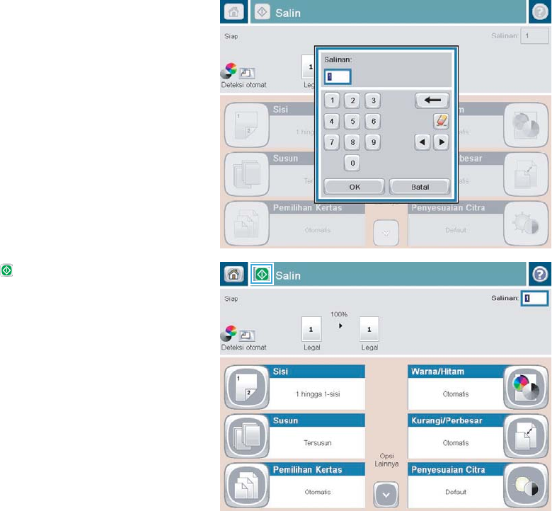 4. Masukkan jumlah salinan, kemudian sentuh