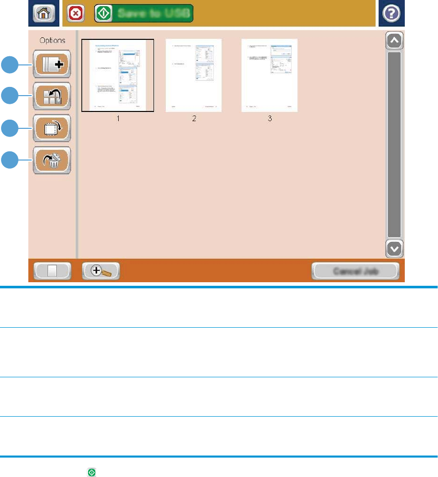 1 Tombol tambah halaman: Gunakan tombol ini untuk menambah lebih banyak halaman pada dokumen. Sentuh tombol