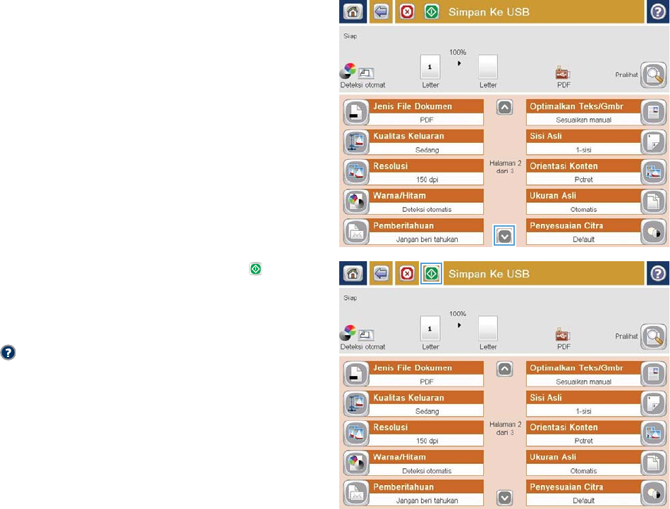 7. Untuk menyimpan le, sentuh tombol Mulai .