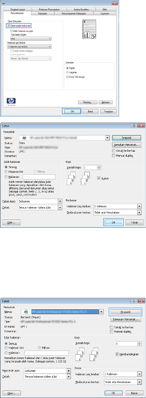 4. Centang kotak Cetak pada kedua sisi. klik tombol