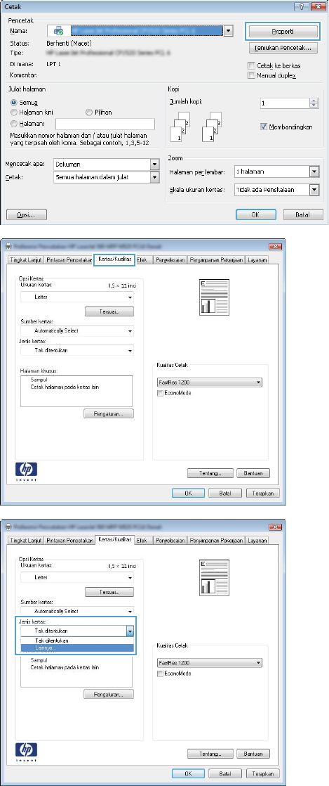 4. Dari daftar buka-bawah Jenis kertas, klik opsi