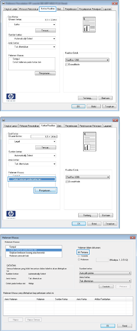 4. Di area Halaman khusus, klik opsi Cetak halaman