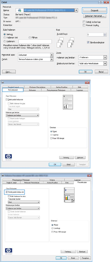 4. Pilih kotak cek Cetak pada kedua sisi.
