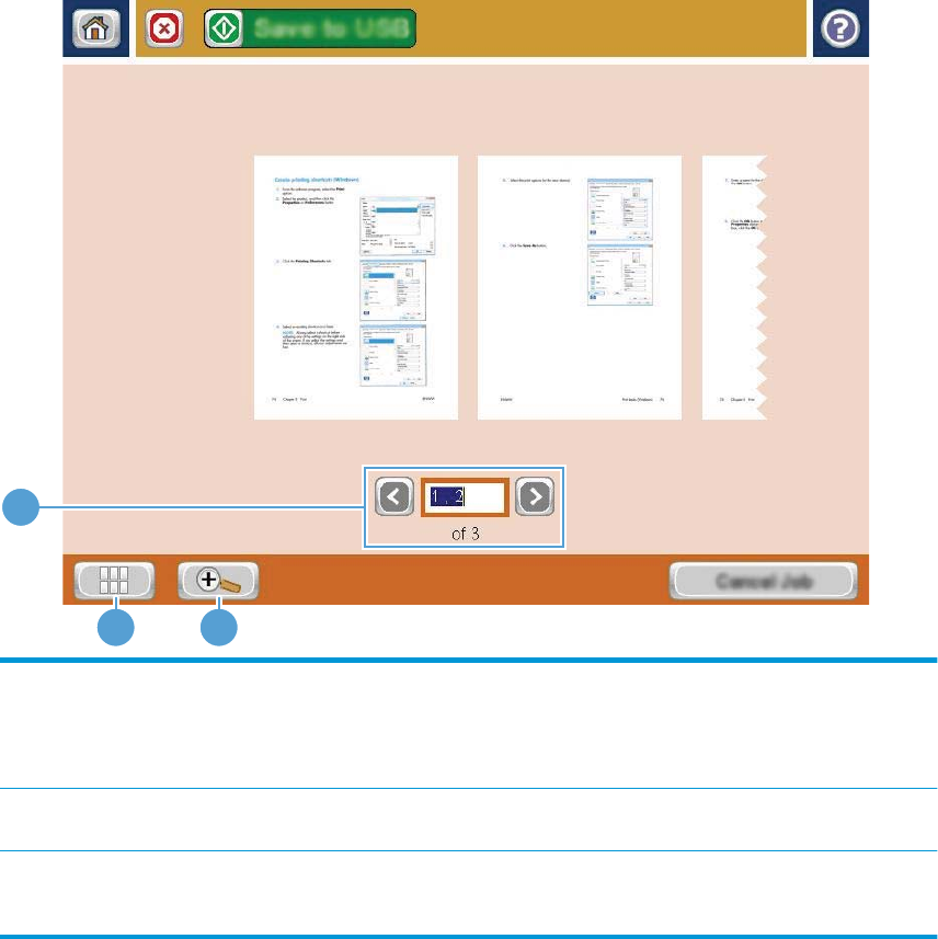 1 Sidnavigeringskontroll: Du kan bläddra fram och tillbaka i dokumentet en sida i taget genom att trycka på pilarna. Du