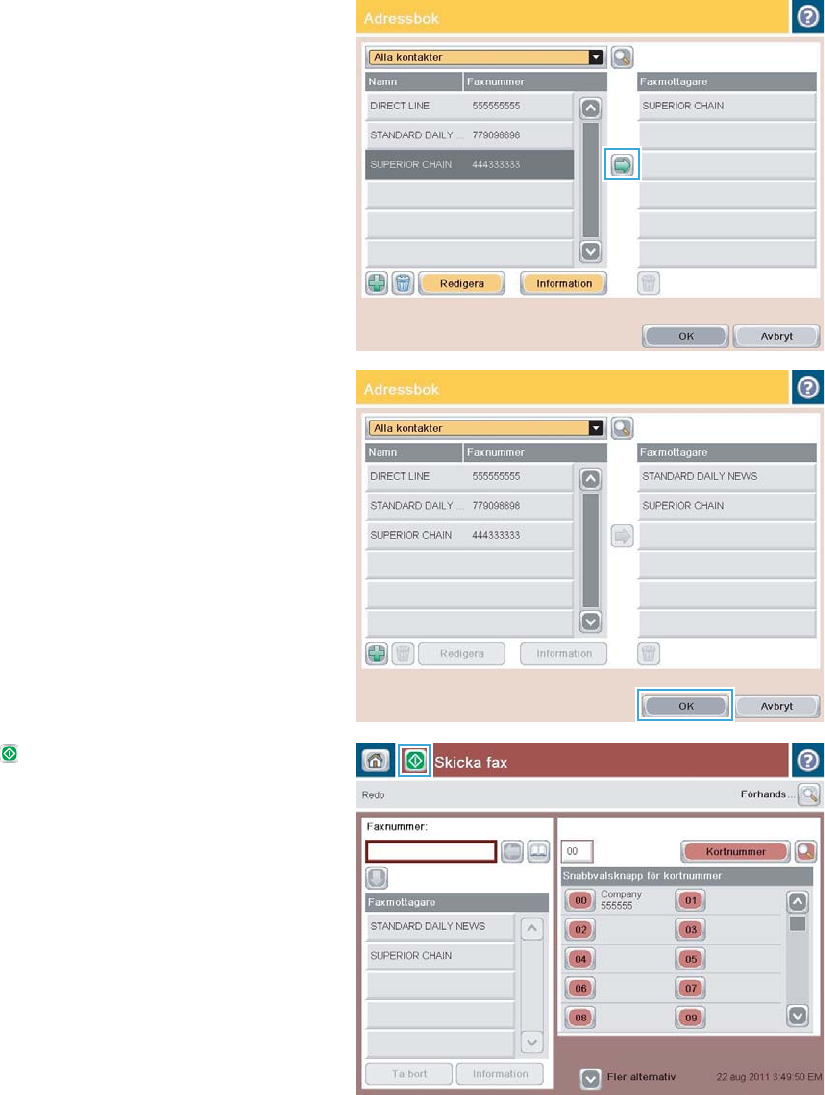 SVWW Skicka ett fax med nummer ur faxadressboken 193