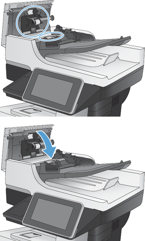 - Rengör inmatningsvalsar och separeringsdyna i dokumentmataren