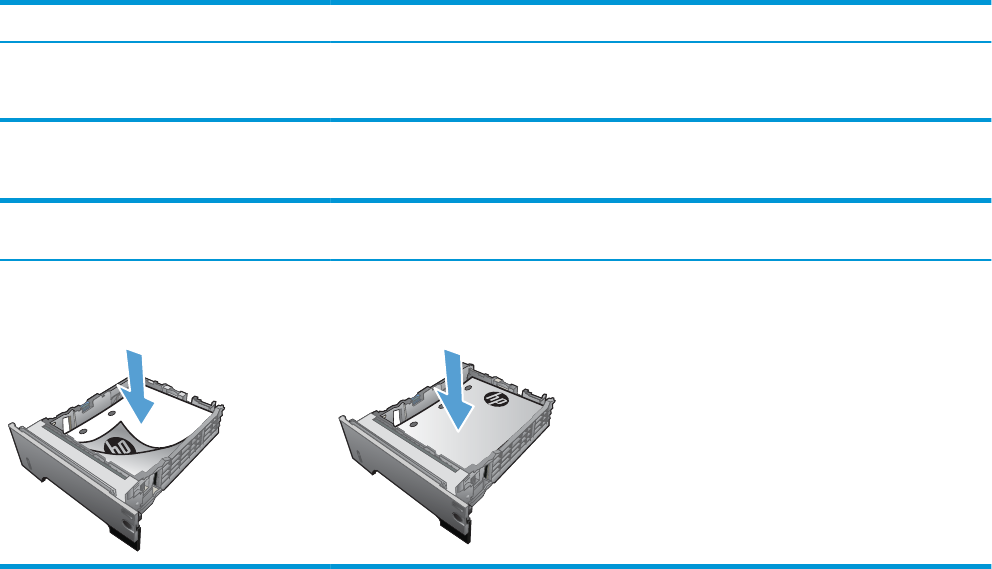 Tabell 3-6 Pappersorientering i fack 2 och extra fack för 500 ark