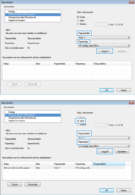 6. Välj rätt alternativ i listrutorna Papperskälla och