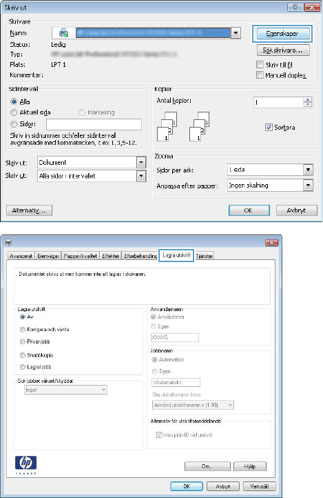 Du kan lagra utskriftsjobb i produkten och skriva ut dem när du vill.