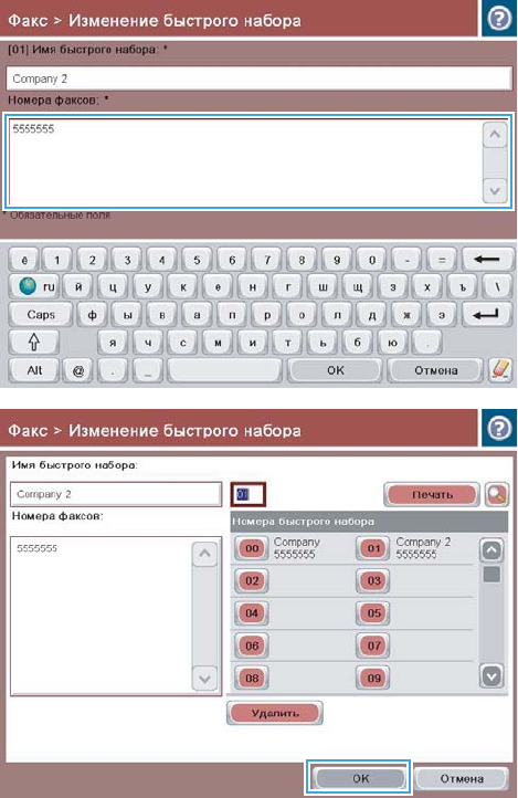 6. Жылдам теру үшін факс нөмірін енгізіңіз.