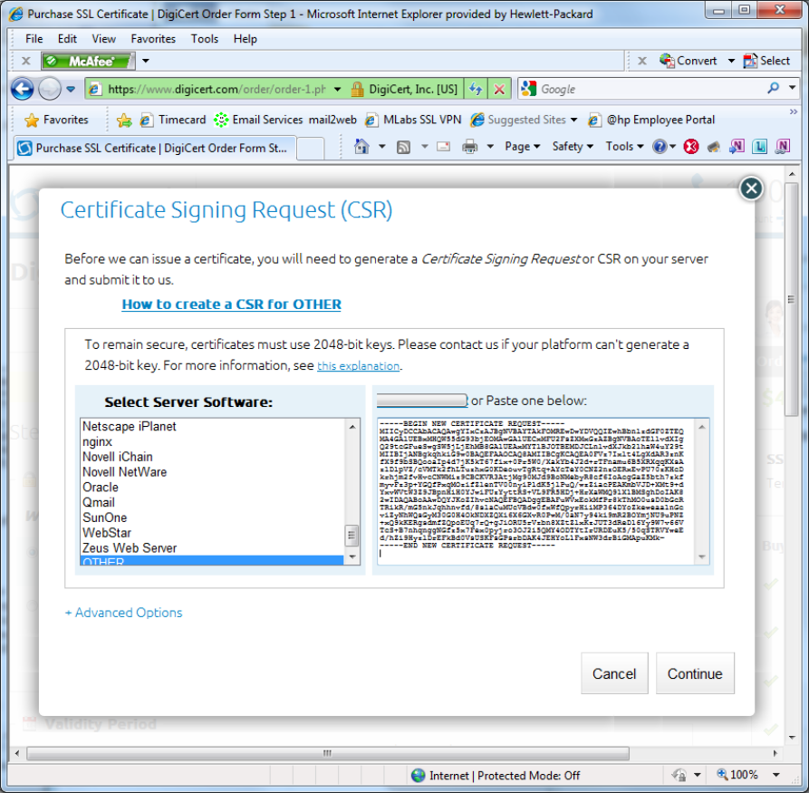 This step of the process the same no matter how the CSR is generated. All of the top CAs will have a page on their web