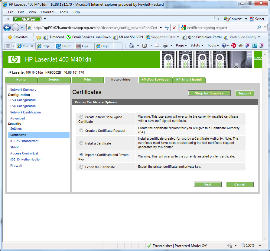 HP LaserJet Pro Devices - Installing 2048 bit SSL certificates