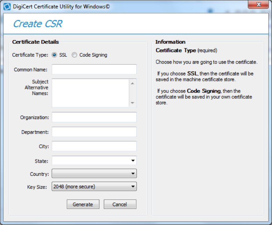 For a printer, choose the “SSL” certificate type and “2048” for the “Key Size”. The “Common Name” is the name that will