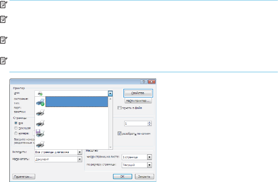 ПРИМЕЧАНИЕ. Окна драйвера печати могут отличаться от приведенных здесь, но действия остаются