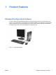 1 Product Features Standard Configuration Features The HP Compaq Ultra-Slim Desktop computer comes with features that may vary depending on the model. For a complete listing of the hardware and software installed in the computer, run the diagnostic utility (included on some computer models only). Instructions for using the utility are provided in the Troubleshooting Guide on the Documentation and Diagnostics CD.