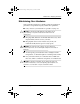 267637-001.book Page 5 Friday, January 11, 2002 3:54 PM Maintenance, Shipping and Travel Cleaning the Keyboard Clean the keyboard regularly to prevent keys from sticking and to remove dust, lint, and particles that can become trapped beneath the keys. Ideally, use a can of compressed air with a straw extension to blow air in and around the keys. Cleaning the Keyboard Ä CAUTION: Do not use liquids of any kind on the keyboard, because they may permanently damage your keyboard.