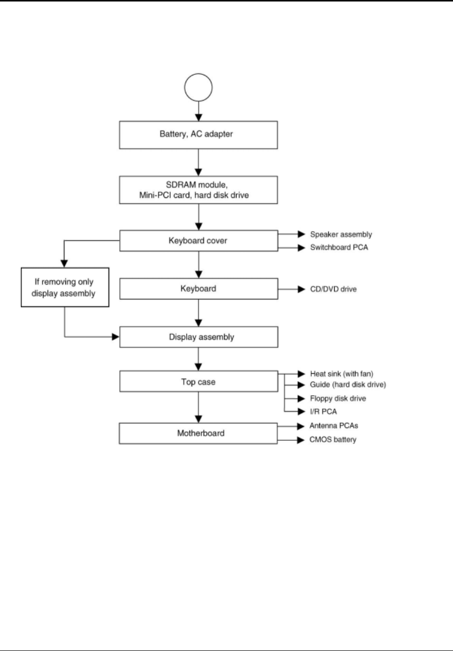 The following diagram shows the general “path” you will use when disassembling the notebook