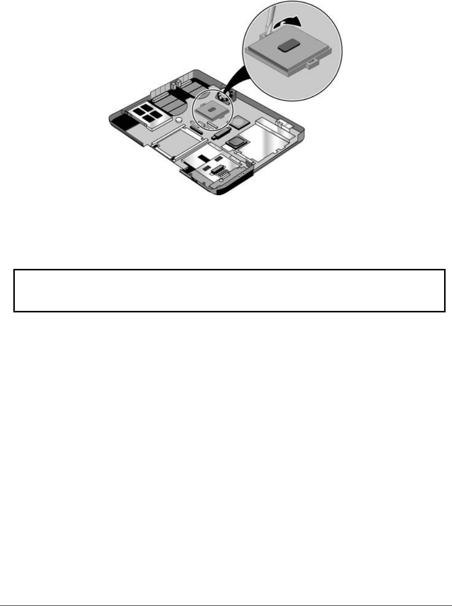 indicated by the arrow in the illustration below to secure the CPU module into the socket.