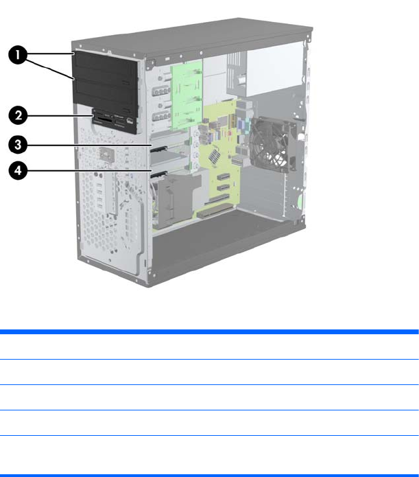 1 Two 5.25-inch drive bays for optional drives (optical drives shown)