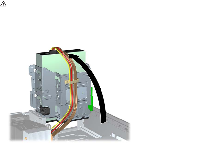 7. Rotate up the internal drive bay housing to access the memory module sockets on the system