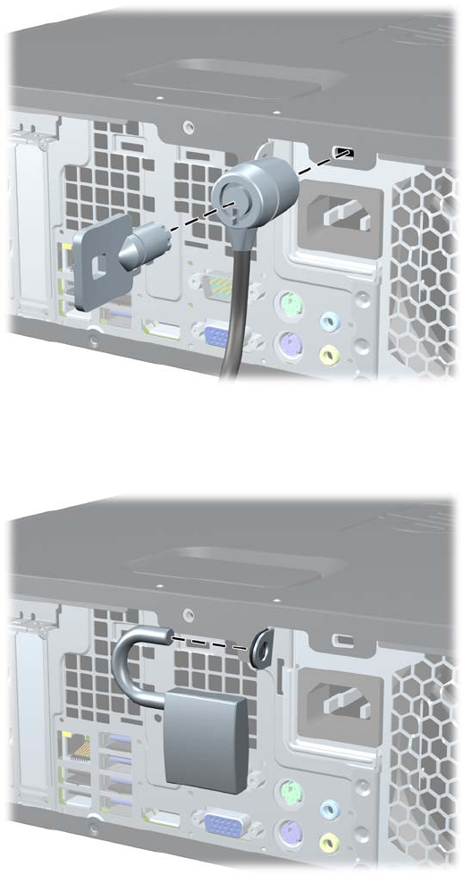 The security locks displayed below and on the following pages can be used to secure the computer.