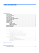 Table of contents 1 Product Features Standard Features ................................................................................................................................ 1 Front Panel Components ..................................................................................................................... 2 Top Components .................................................................................................................................. 3 Rear Panel Components ............