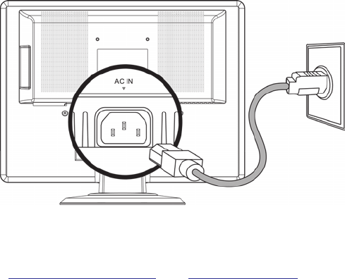 4 Connect one end of the power cord to the back of the monitor and plug the other end into a grounded outlet.