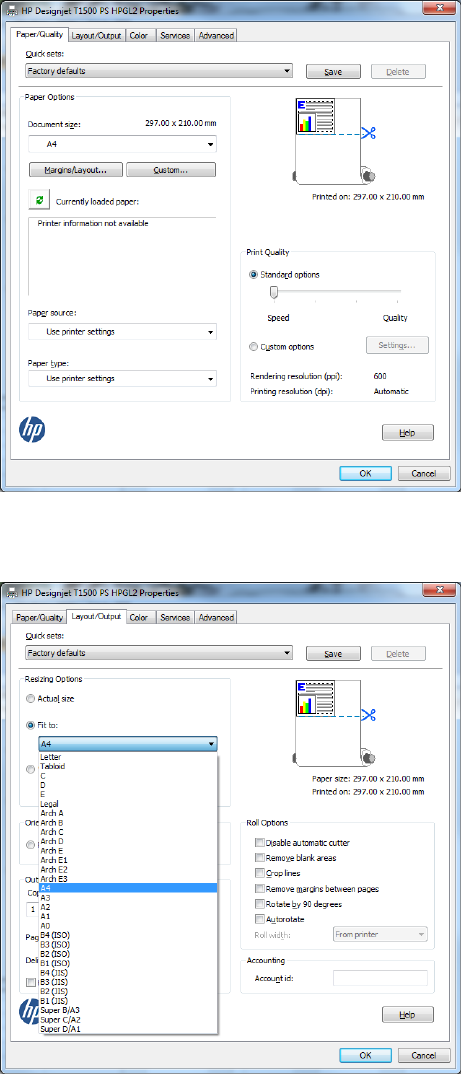 Druckereinstellungen verwenden und Papiertyp: Druckereinstellungen verwenden.