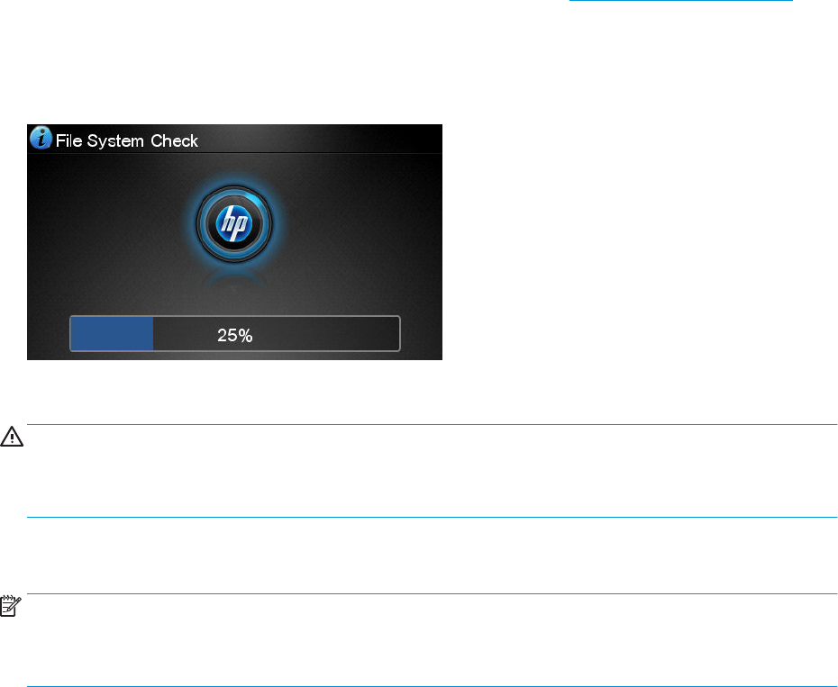 ACHTUNG: Wenn Sie den Drucker vor Abschluss der Überprüfung ausschalten, kann das Dateisystem