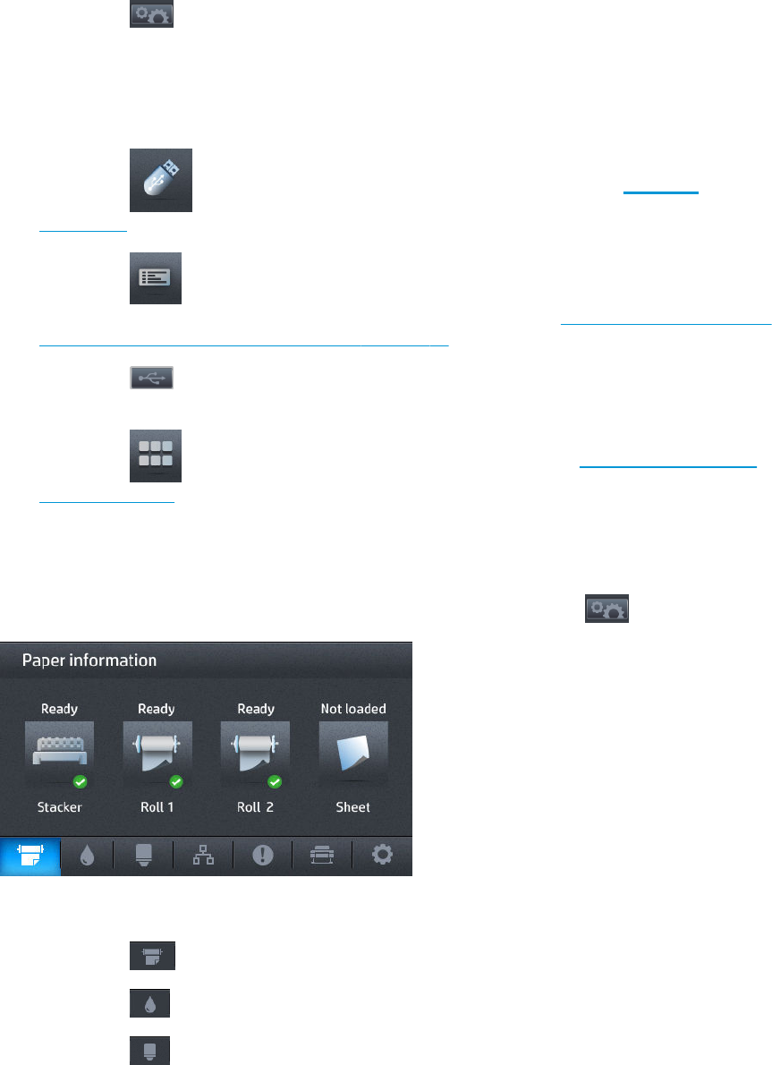 Drücken Sie , um eine Datei von einem USB-Stick aus zu drucken. Siehe „Drucken“