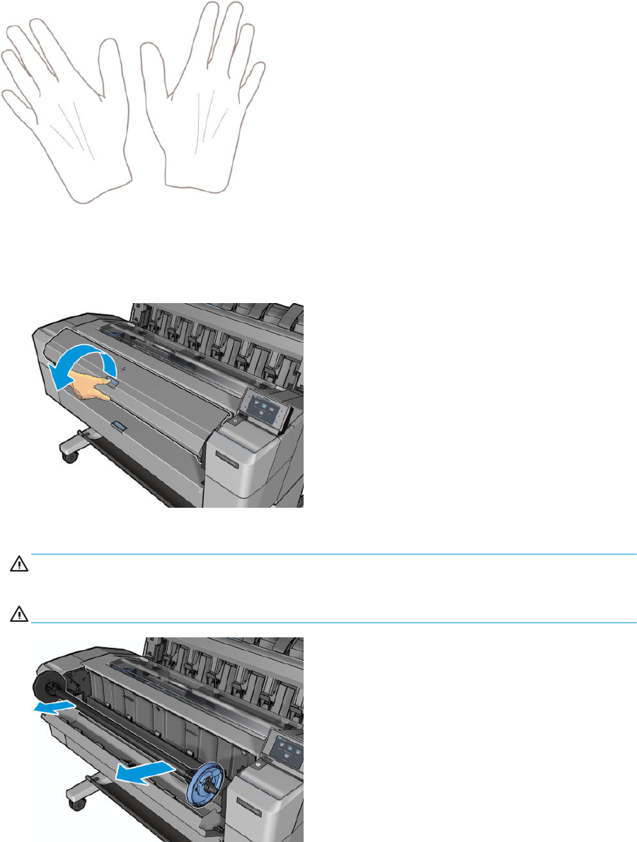 2. Nehmen Sie zuerst das schwarze Ende der Spindel und danach das blaue Ende aus dem Drucker heraus.