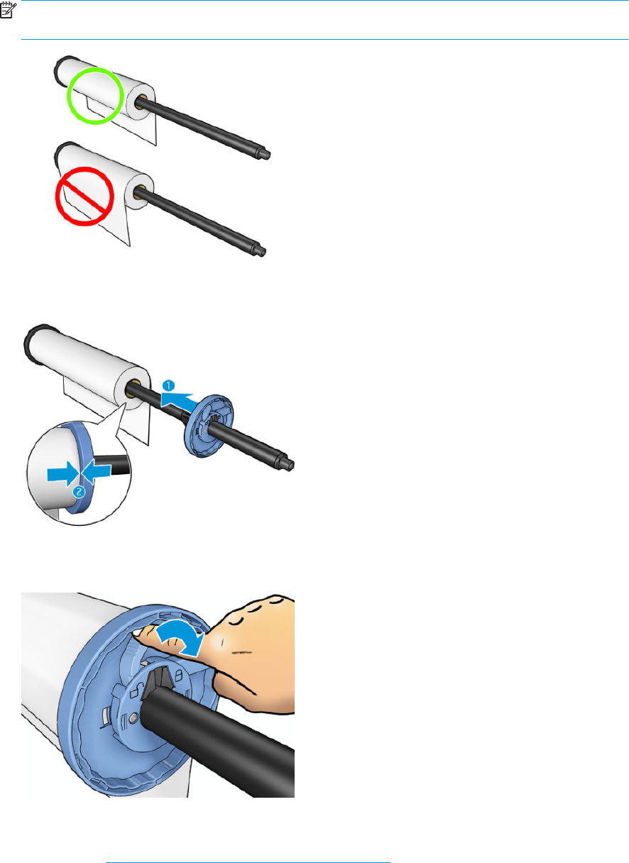 6. Schieben Sie die neue Rolle auf die Spindel. Das Druckmaterial muss wie unten gezeigt ausgerichtet