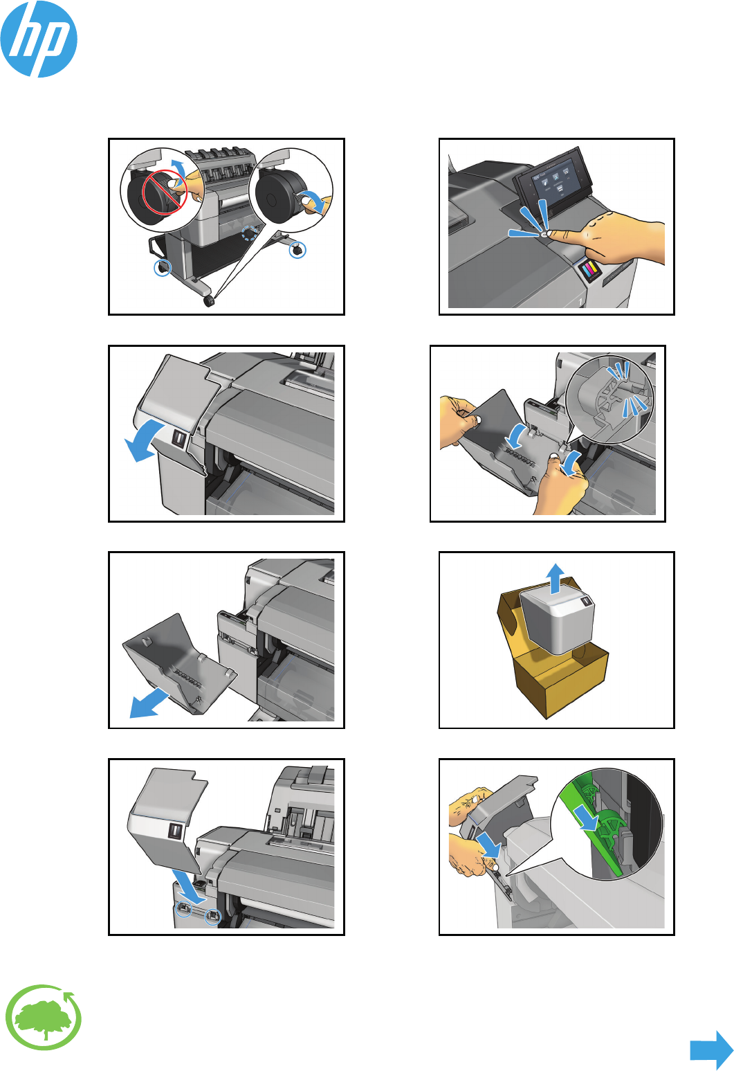 Designjet T920 and T1500 ePrinter Series Ink cover, service-station side 1 2 3 4 5 6 7 8 HP cares about the environment