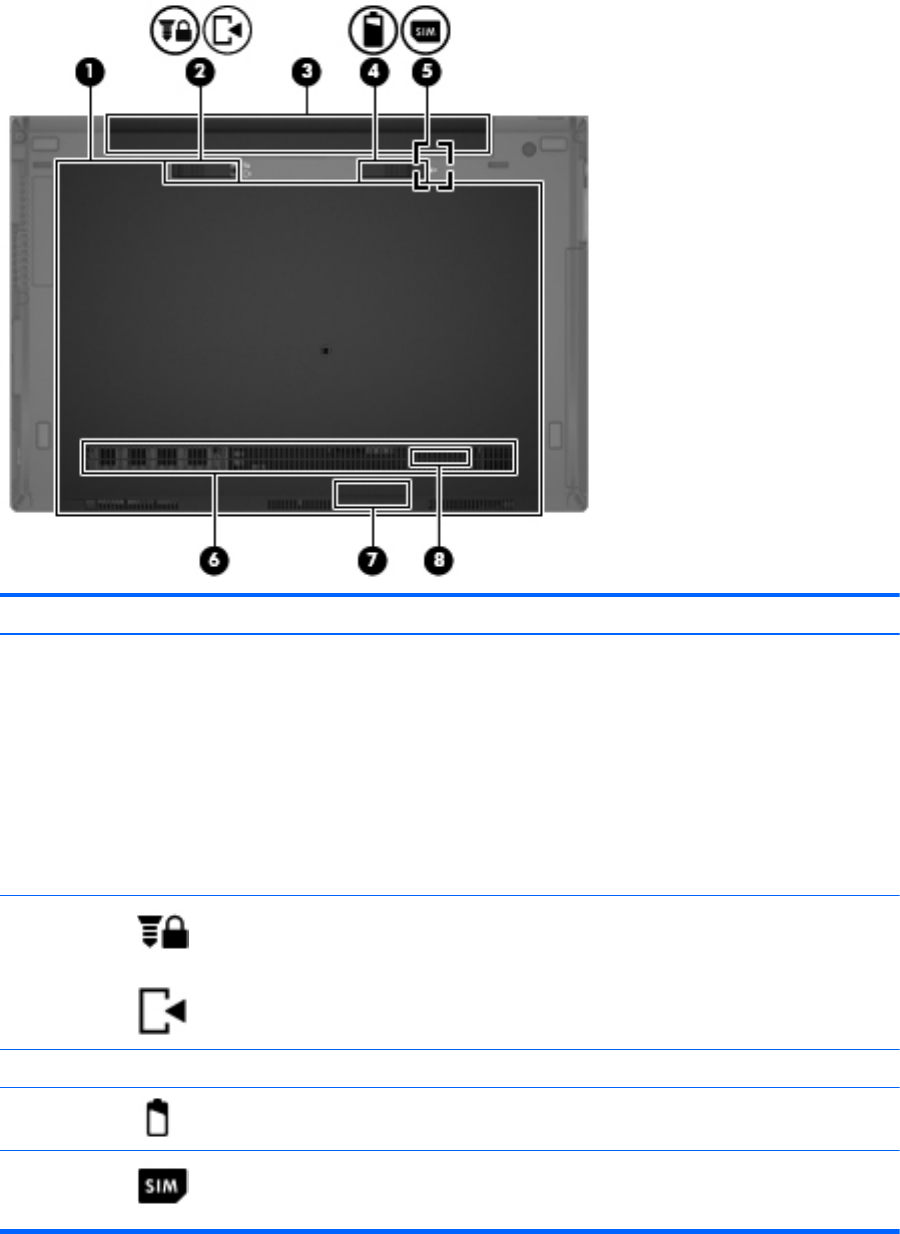 (1) 底面カバー ハードドライブ、無線 LAN モジュール スロット、無