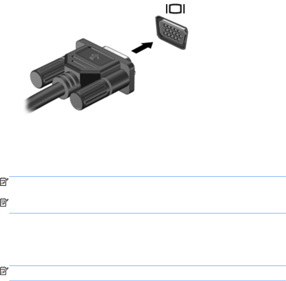 VGA ディスプレイ デバイスを接続するには、デバイスのケーブルを外付けモニター コネクタ