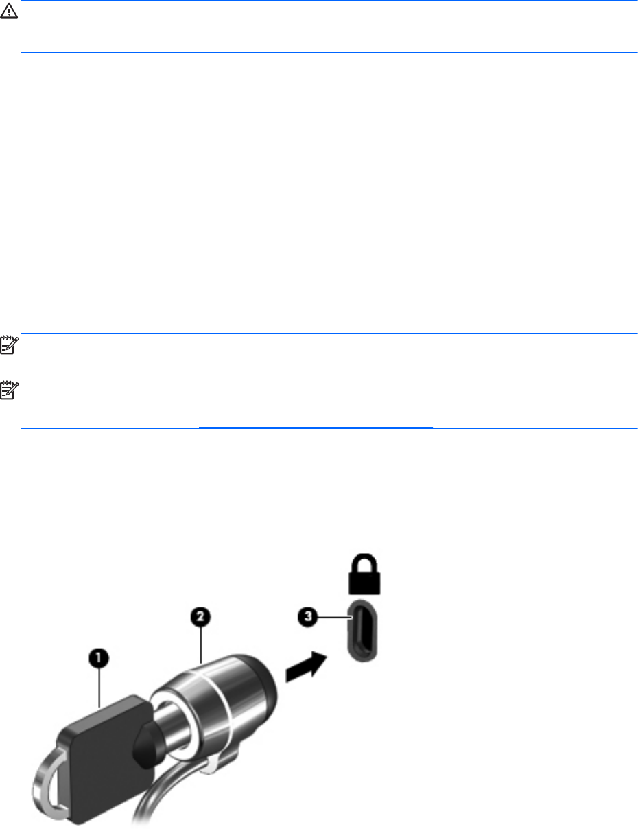 3. セキュリティ ロック ケーブルをコンピューターのセキュリティ ロック ケーブル用スロット