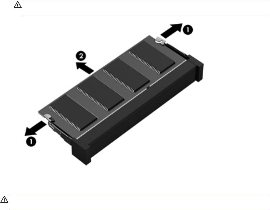 斜め上にメモリ モジュールを引き抜いて(2)取り外します。