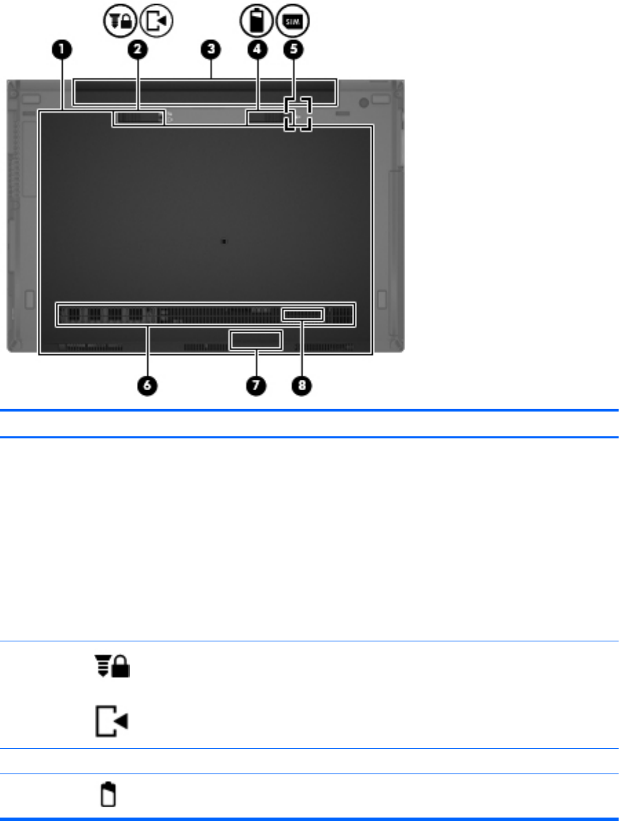 Trava de liberação da bateria Libera a bateria do respectivo compartimento.