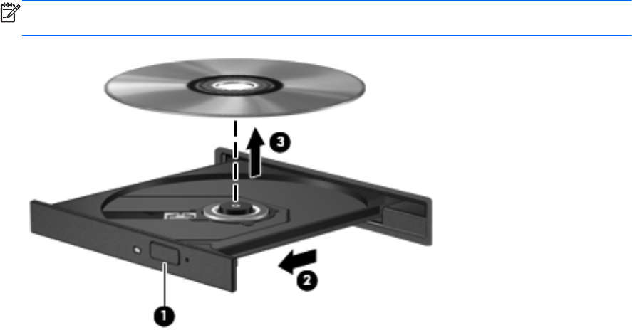 2. Retire o disco (3) da bandeja pressionando cuidadosamente o eixo e levantando as bordas do