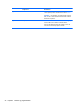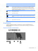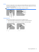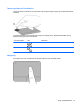 TouchPad-lysdioden og visningsikonerne angiver TouchPad-status. Nedenstående tabel viser og