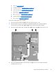 b. Release the WLAN antenna cables from the clips (2) and routing channels built into the