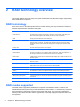 2 RAID technology overview This chapter defines the terms used in this guide and describes the RAID technologies supported by select HP Business computers. RAID terminology Some of the terms in the following table have a broader meaning, but they are defined in relation to the RAID implementation described in this guide. Term Definition Fault tolerance The ability of the computer to continue to operate if one drive fails.